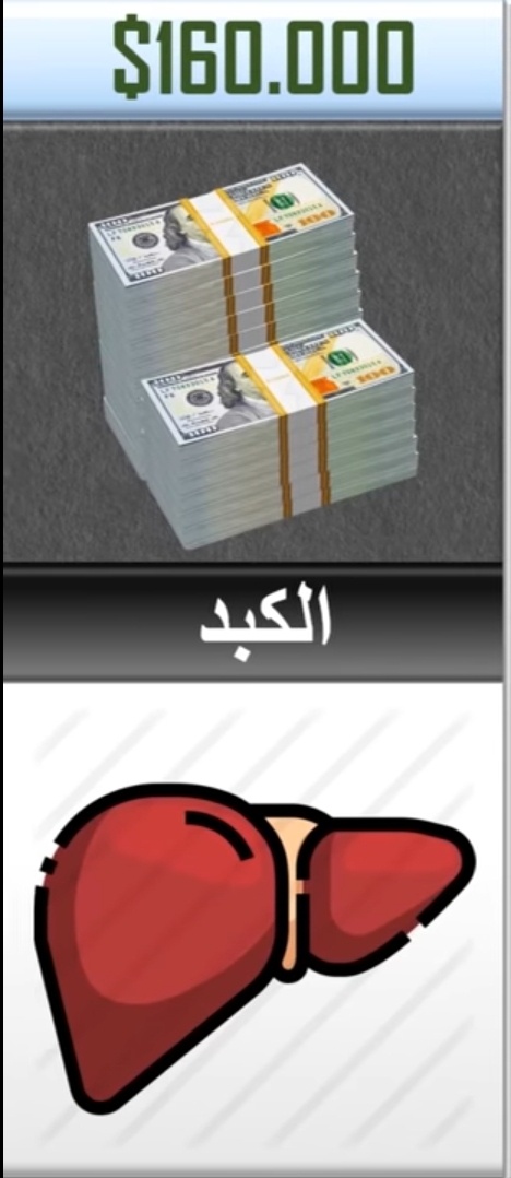 الكبد: لها وظائف عديدة منها إنتاج العصارات، تخثر الدم وحمايته من التجلط.. وتبلغ قيمته التسويقية 160000$.